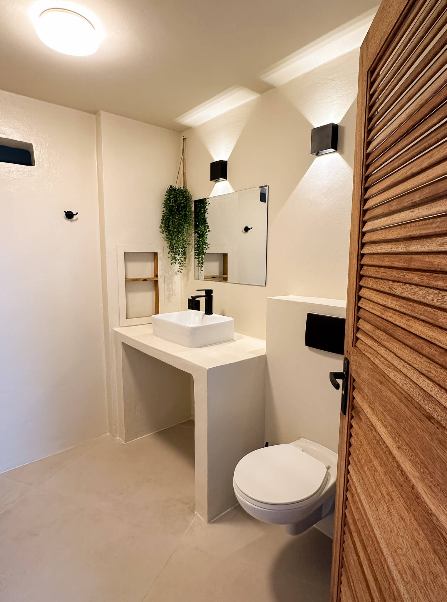 Het appartement is aangesloten aan een woonhuis. Het heeft een eigen ingang en bevat: Een slaapkamer met een comfortabel tweepersoonsbed, een kledingkast en uitstekend werkende airco.